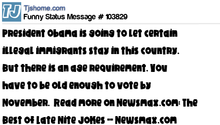 X is President Obama is going to let certain illegal immigrants stay in this country. But there is an age requirement. You have to be old enough to vote by November. Read more on Newsmax.com: The Best of Late Nite Jokes -- Newsmax.com Important: Do You Suppo