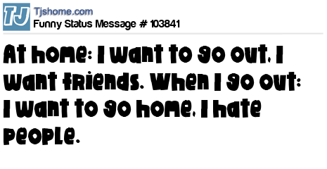 X is At home: I want to go out, I want friends. When I go out: I want to go home, I hate people.