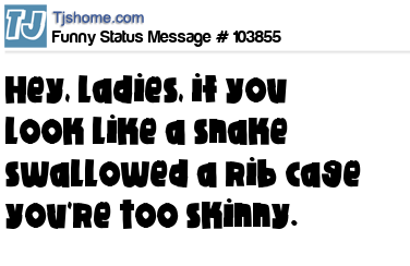 X Hey, ladies, if you look like a snake swallowed a rib cage you're too skinny.