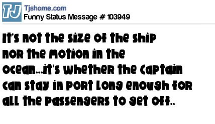 - # 111845 I would like to remind everyone it's not the size of the boat... Or the motion of the ocean, but the whether the boat is able to stay in port until all passangers have gotten off.