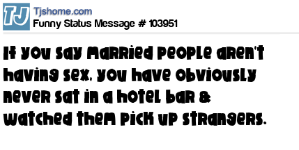 X If you say married people aren't having sex, you have obviously never sat in a hotel bar & watched them pick up strangers.