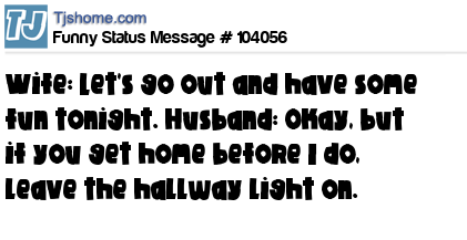 X says Wife: Let's go out and have some fun tonight. Husband: Okay, but if you get home before I do, leave the hallway light on.