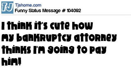 X I think it's cute how my bankruptcy attorney thinks I'm going to pay him!