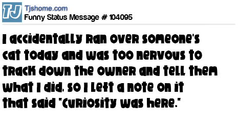 - # 102418 Accidentally ran over my neighbor's cat today and I was scared to tell him to his face so I left a note saying "Curiosity was here"