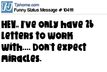 X HEY,, I've only have 26 letters to work with.... Don't expect miracles.
