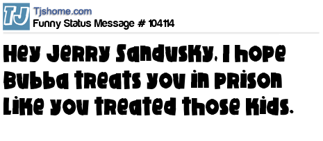 X Hey Jerry Sandusky, I hope Bubba treats you in prison like you treated those kids.