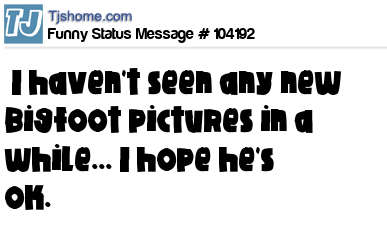 X I haven't seen any new Bigfoot pictures in a while... I hope he's ok.