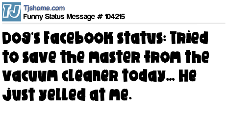 X Dog's Facebook status: Tried to save the master from the vacuum cleaner today… He just yelled at me.