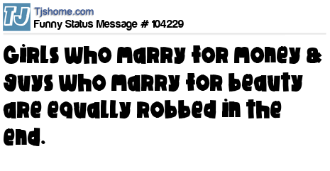 X says Girls who marry for money & guys who marry for beauty are equally robbed in the end.