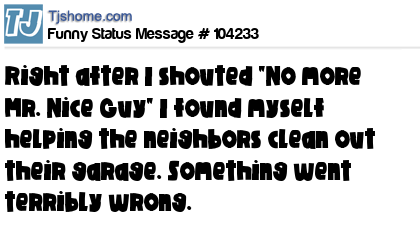 X says Right after I shouted "No more Mr. Nice Guy" I found myself helping the neighbors clean out their garage. Something went terribly wrong.