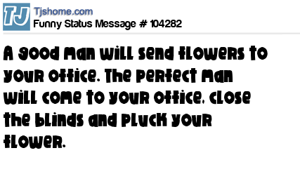 X says A good man will send flowers to your office. The perfect man will come to your office, close the blinds and pluck your flower.