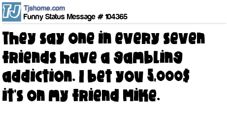 X They say one in every seven friends have a gambling addiction. I bet you 5,000$ it's on my friend Mike.