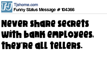 X says Never share secrets with bank employees, they're all tellers.