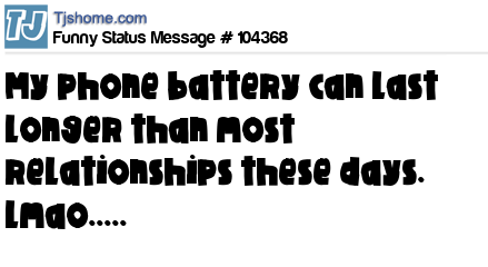 X says My phone battery can last longer than most relationships these days. Lmao.....