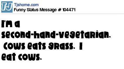 - # 158845 I'm a second hand vegetarian... cows eat grass and I eat cows.