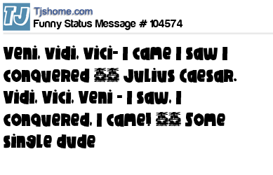 X Veni, vidi, vici- I came I saw I conquered ~~ Julius Caesar. Vidi, Vici, Veni - I saw, I conquered, I came! ~~ Some single dude