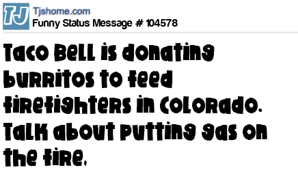 X says Taco Bell is donating burritos to feed firefighters in Colorado. Talk about putting gas on the fire,