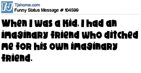 - # 3726 Sometimes I wonder what became of the imaginary friend I had as a kid... Did he go to imaginary college? Is he married to an imaginary woman or have imaginary kids? I should google his punk ass...