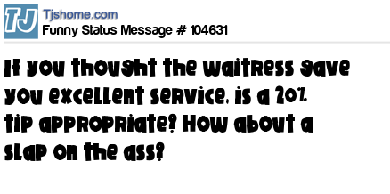 X says If you thought the waitress gave you excellent service, is a 20% tip appropriate? How about a slap on the ass?