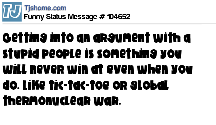 X Getting into an argument with a stupid people is something you will never win at even when you do. Like tic-tac-toe or global thermonuclear war.