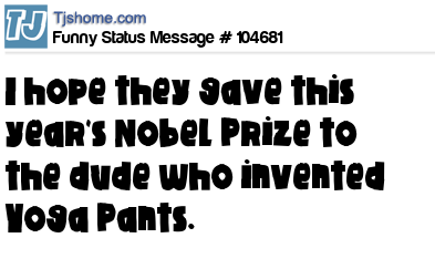 X is I hope they gave this year's Nobel Prize to the dude who invented Yoga Pants.