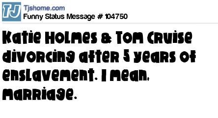 X says Katie Holmes & Tom Cruise divorcing after 5 years of enslavement. I mean, marriage.