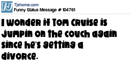 X says I wonder if Tom Cruise is jumpin on the couch again since he's getting a divorce.