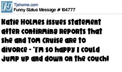 - # 104772 Tom Cruise and Katie Holmes getting a divorce...Now it's Katies turn to jump up and down on Oprah's couch.