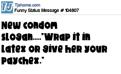 - # 99260 New Condom Slogan: Wrap it in latex or she's going to get your paychecks.