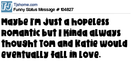 X says Maybe I'm just a hopeless romantic but I kinda always thought Tom and Katie would eventually fall in love.