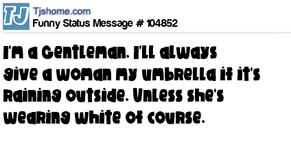 X says I'm a Gentleman. I'll always give a woman my umbrella if it's raining outside. Unless she's wearing white of course.