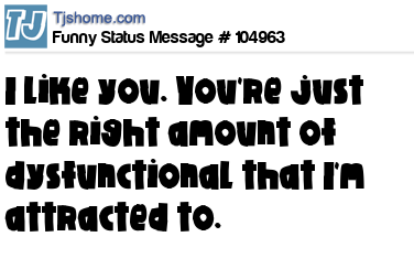 - # 104411 I like you. You're the right amount of dysfunctional that I'm attracted to.