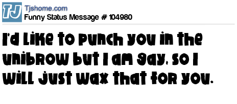 X I'd like to punch you in the unibrow but I am gay, so I will just wax that for you.