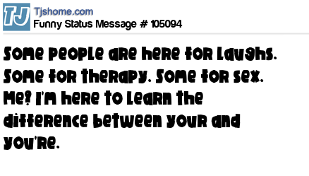 X says Some people are here for laughs. Some for therapy. Some for sex. Me? I'm here to learn the difference between your and you're.