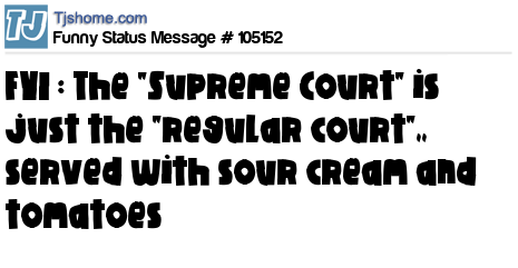 - # 104654 The supreme court is just like regular court but with sour cream.