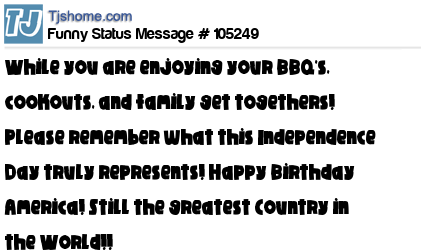 X is While you are enjoying your BBQ's, cookouts, and family get togethers! Please remember what this Independence Day truly represents! Happy Birthday America! Still the greatest Country in the World!!