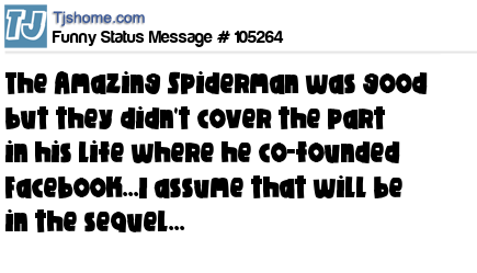 X is The Amazing Spiderman was good but they didn't cover the part in his life where he co-founded Facebook...I assume that will be in the sequel...