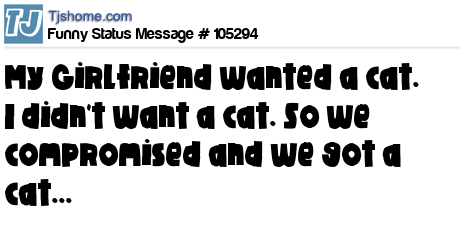 X says My Girlfriend wanted a cat. I didn't want a cat. So we compromised and we got a cat...
