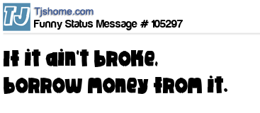 - # 79002 You need to borrow what? Some money? Nah, you broke people need to borrow a job.