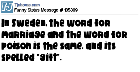 X says In Sweden, the word for marriage and the word for poison is the same, and its spelled "gift".