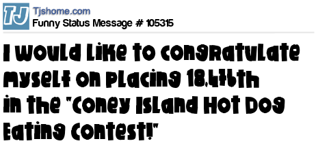 X I would like to congratulate myself on placing 18,476th in the "Coney Island Hot Dog Eating Contest!" ツ