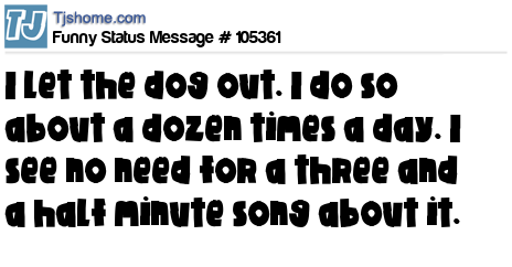 X says I let the dog out. I do so about a dozen times a day. I see no need for a three and a half minute song about it.