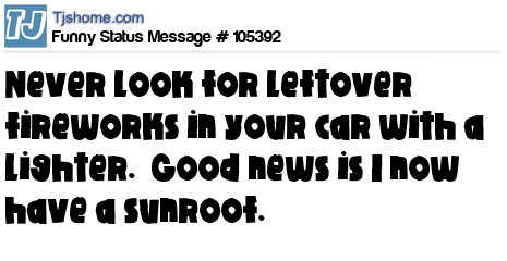 X Never look for leftover fireworks in your car with a lighter. Good news is I now have a sunroof.