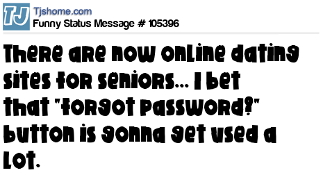 X There are now online dating sites for seniors... I bet that "forgot password?" button is gonna get used a lot.