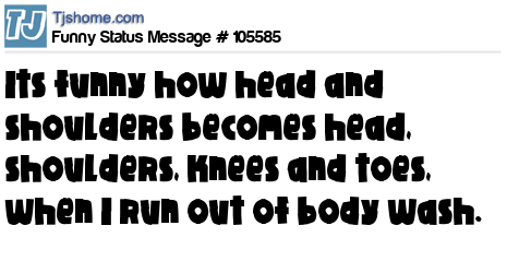 X Its funny how head and shoulders becomes head, shoulders, knees and toes, when I run out of body wash.