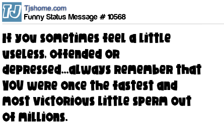- # 6780 if you ever feel bad or depressed, just remember you were once the fastest most victorious sperm in the bunch!!
