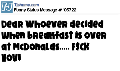 X is Dear Whoever decided when breakfast is over at McDonalds..... F$CK YOU!