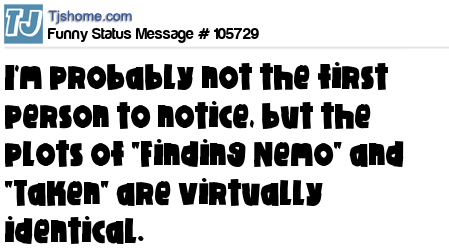 - # 105750 Has anyone else noticed the plots of "Finding Nemo" and "Taken" are virtually identical?