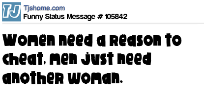 - # 92936 Women cheat on men more often when they're ovulating. Men cheat on women more often when they're drunkulating.