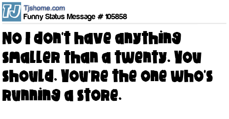 X is No I don't have anything smaller than a twenty. You should. You're the one who's running a store.